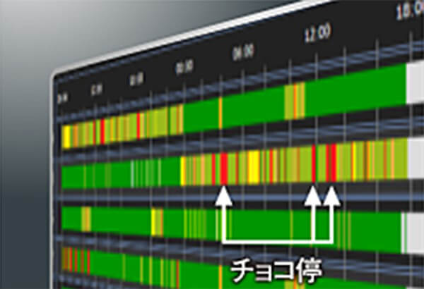 稼動状態を分析して生産効率の改善に貢献。ガントチャートにすると、稼動率低下の要因が一目瞭然。
